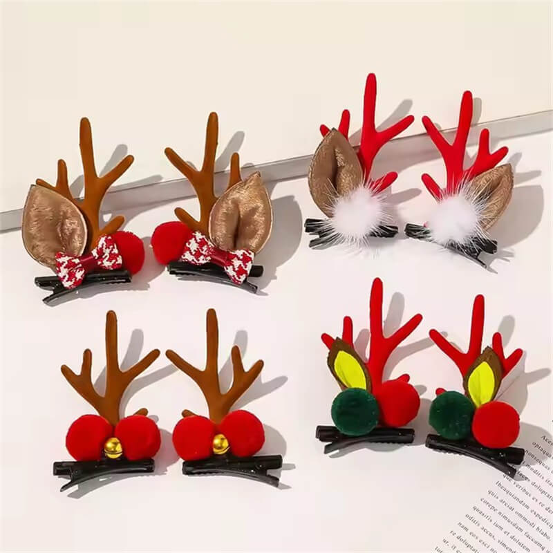 사랑스러운 디자인: 생생한 빨간색(맞춤 색상 제공 - MOQ 적용)의 클래식 순록 뿔이 특징인 이 클립은 어떤 헤어스타일에도 기발한 느낌을 더해줍니다.
